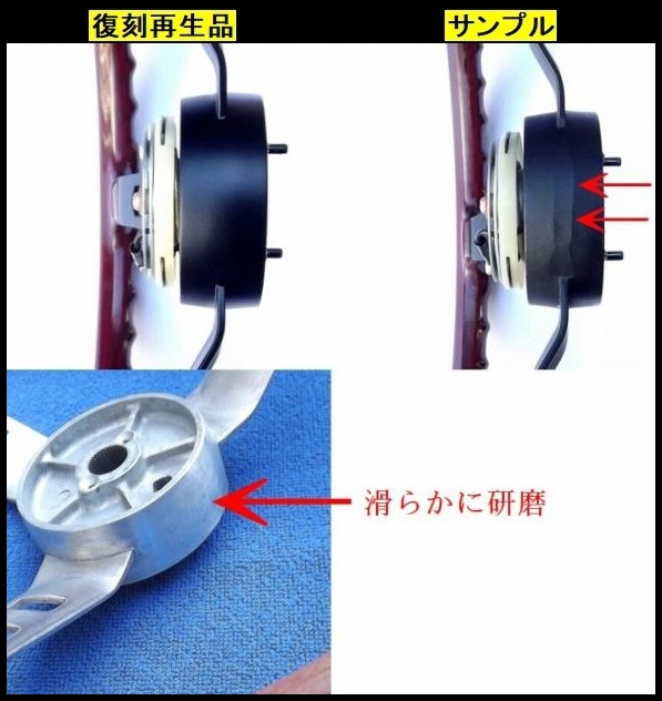 S30フェアレディーZのボス外周部は、グラインダーでバリを削っただけの、文字通り粗削りな造りとなっていて凸凹していますかが、当工房は、この部分も入念に研磨し、大きくクオリティーアップさせています。