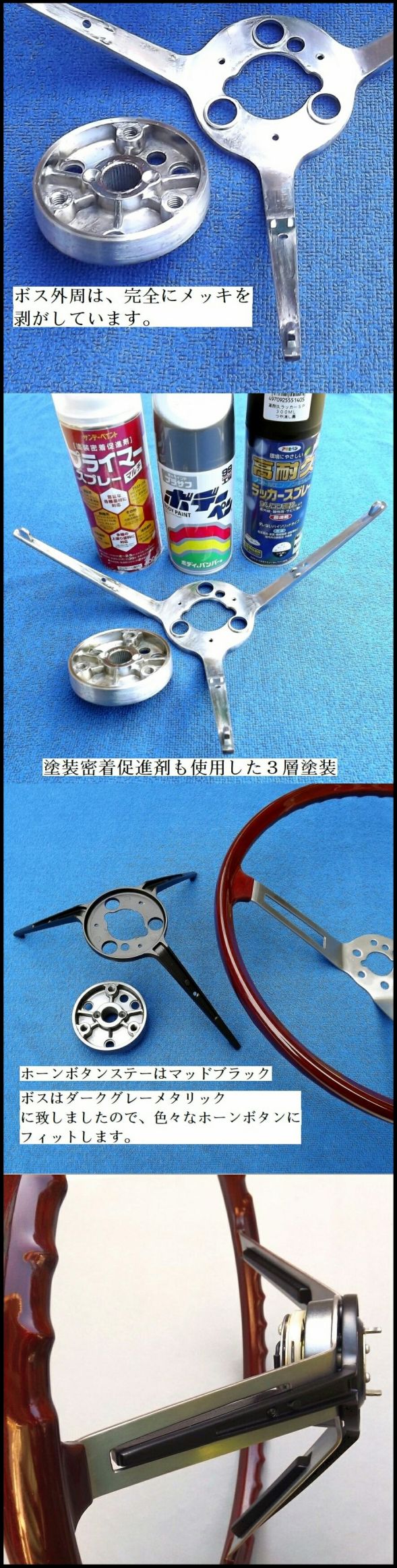 ■復刻再生は、中古、純正ステアリングの、塗膜をすべてを剥ぎ取り、グリップ、スポークの研磨、ボス内部パーツのクリーンアップから始めます。