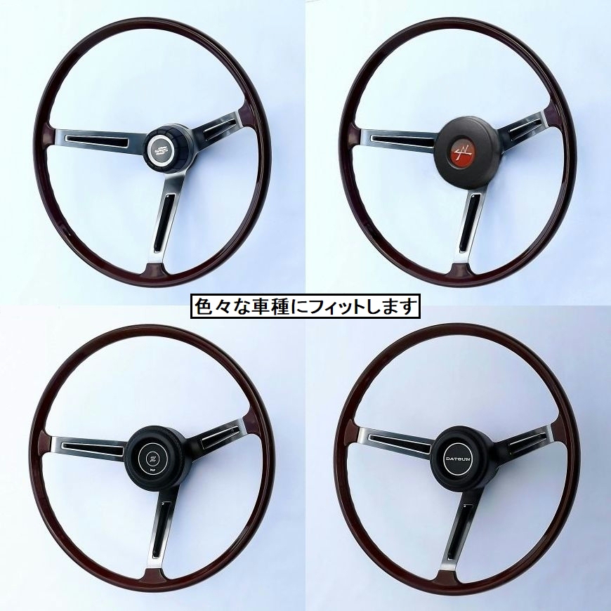 「ブルーバード 510 SSS 純正ステアリング」の、基本設計はPGC10型GT-R用と同一であり、相違点はスポーク上のホーンボタンの長さのみですので、ハコスカ、ケンメリなど、広く流用されています。