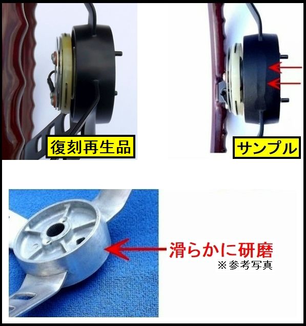 「復刻再生」は、ボスもスポークも、すべての塗膜を剥ぎ取り、一から塗装いたしますので、例えば、一万五千円の中古ステアリングも、二十万円の中古ステアリングも、完成後は、見分けのつかない、同じ新品状態になります。