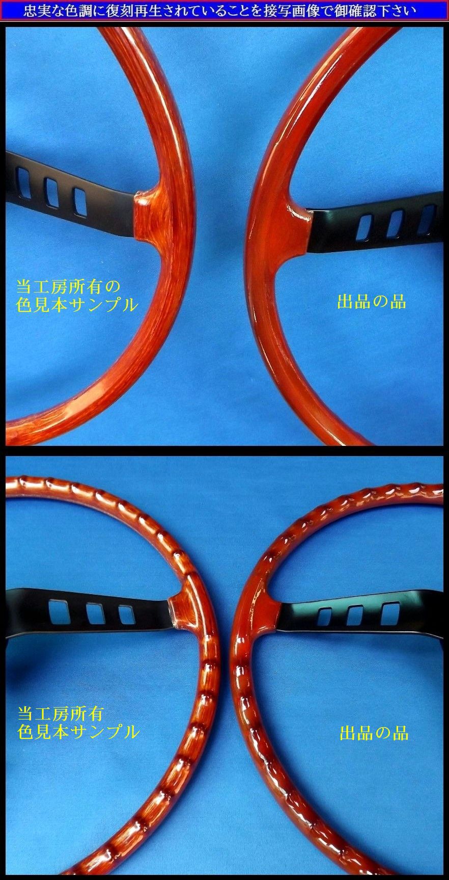 当工房所有の、色見本サンプルステアリングを基に忠実に復刻再生していますのでご安心ください。(比較写真をご参照下さい)