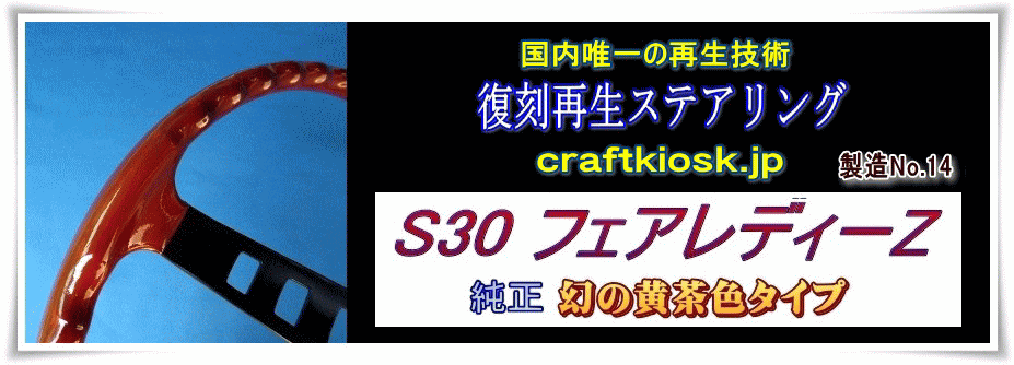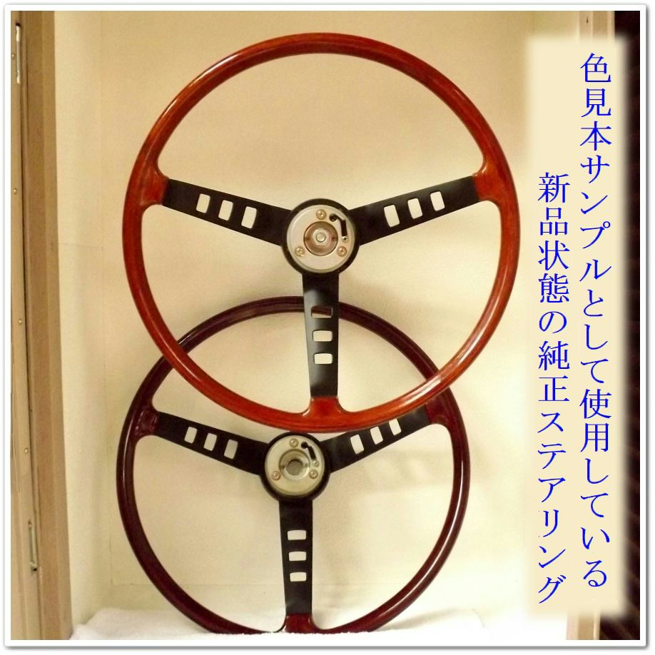 当工房は、新品状態の「海老茶タイプ」と「黄茶色タイプ」のS30Zステアリングを所有し、色見本(サンプル)として製作していますので、新車当時の色合いが完全再現されている事を保障できます。