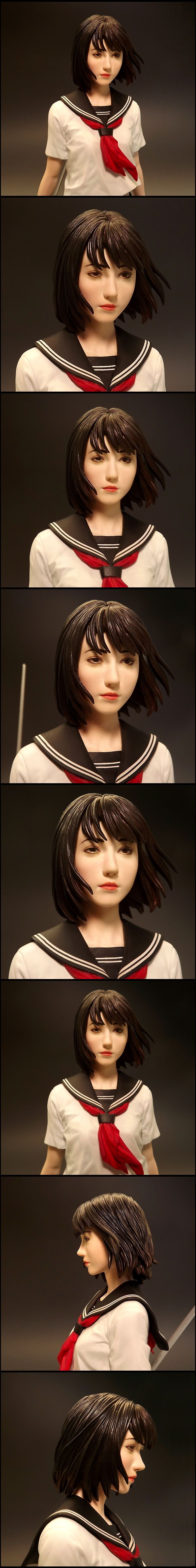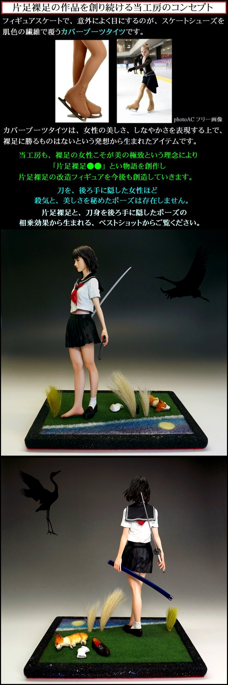 この作品では、刀を後ろ手に持たせることにより、日本刀の美しさを最大限に感じることがてきる究極のフィギュアを目指しました!!
